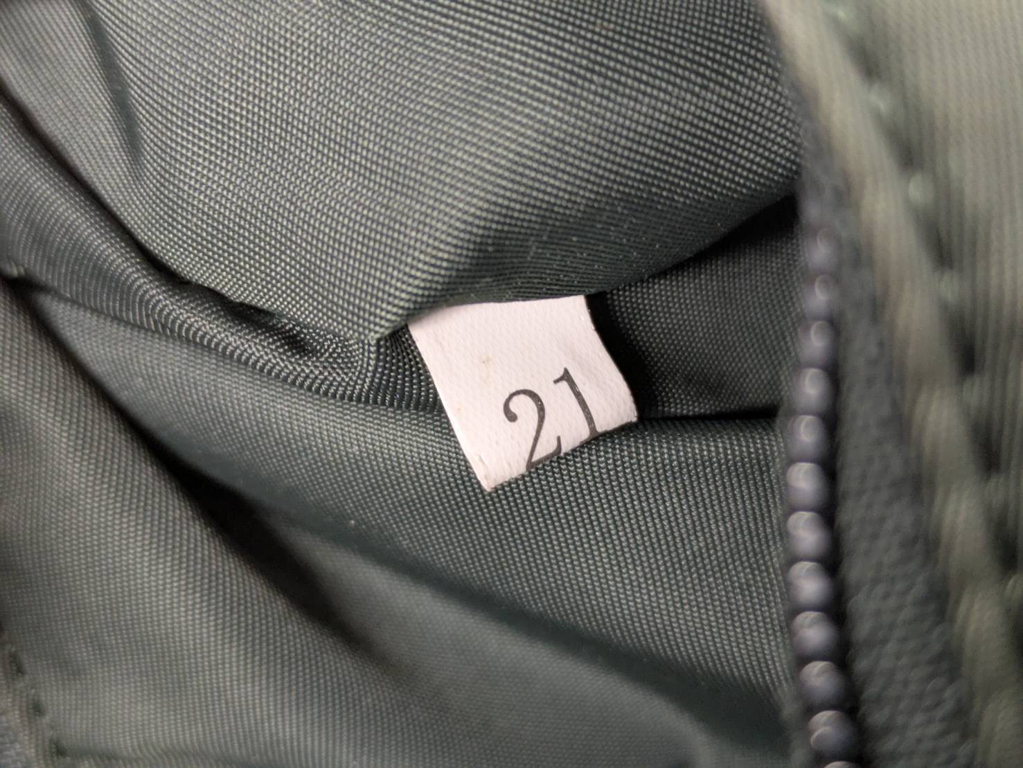 内側にある白タグは、正規品では統一されたフォントで印字されています。今回の基準外品は正規品とは異なる字体で印字されていました。この字体はNGです。